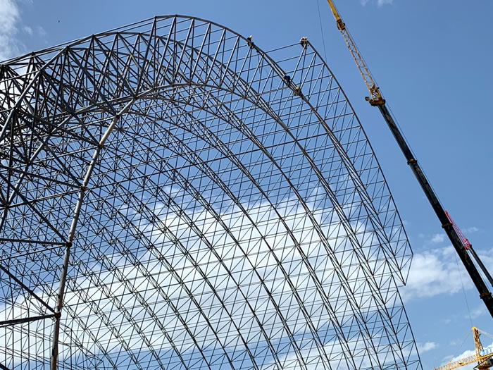 (2)网架加工前应对现场尺寸进行复测,确认无误后方可进行加工、安装;网架制作、运输、安装应遵守《空间网格结构技术规程》JGJ7-2010、《钢网架中卫螺栓球节点》JG/T 10-2009、《钢网架中卫螺栓球节点用高强度螺栓》 GB/T 16939-2016、《中卫钢结构中卫工程中卫施工规范》 GB50755-2012、《中卫钢结构中卫工程施工质量验收标准》 GB50205-2020。
